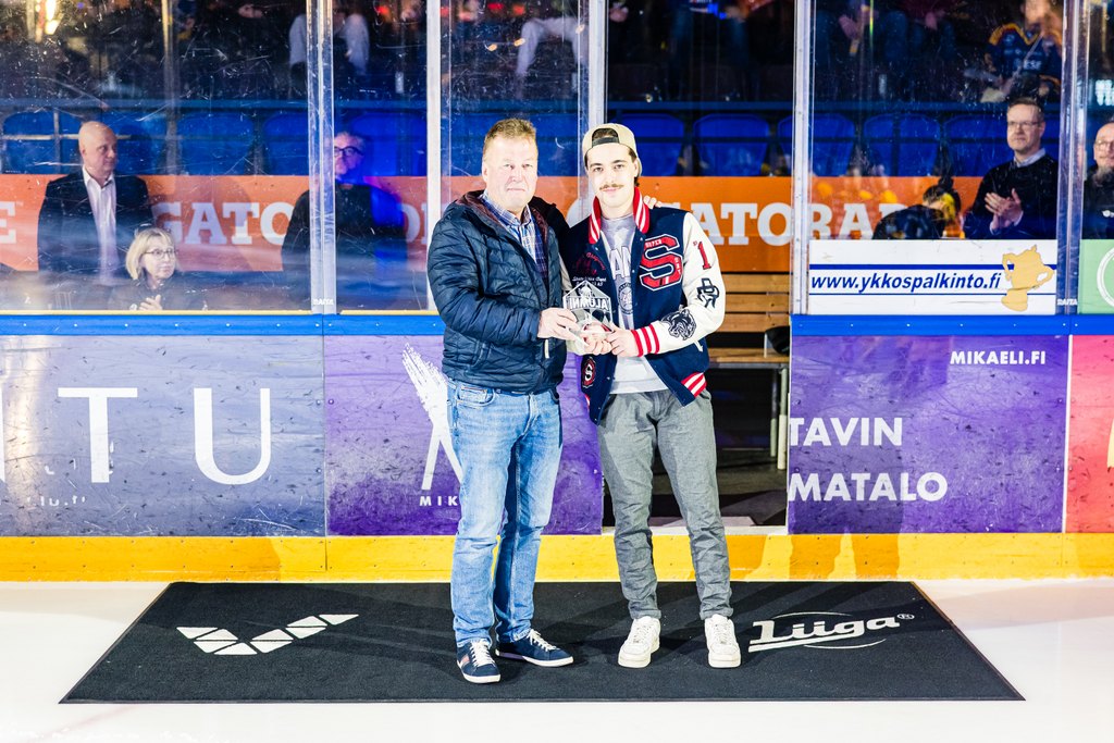 Perttu Pullinen ja Tuomas Anttonen palkitsi Oskars Batnan kaudella 2023-2024 ! Kuva: Mikko Kankainen